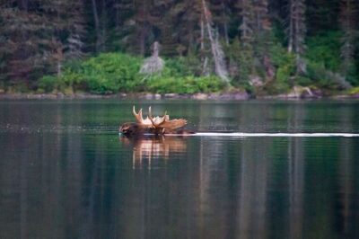 Rare, but confirmed, killer whales have preyed on moose swimming off the coast of Alaska and British Columbia.
