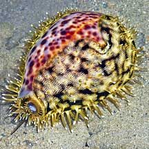 Biologically, cowries are snails with a hidden spiral inside their shells. As adults the spiral becomes obscured by their polishing. They’ve got a keratin trapdoor for protection, and their shells are tough enough that only octopuses and some crabs can really get to them. They graze on algae around coral reefs, sharing the job of cleaning with tangs and angelfish but not competing directly.