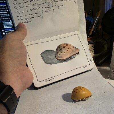 This morning’s sketch from the Random Object Randomogrifier turned out to be a cowrie shell… except it wasn’t just a shell.