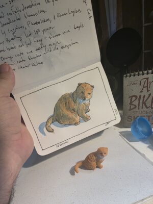 Orange cats bring their own quirks. Most are male because of genetics, just as calicos are almost all female. People often think orange cats are goofy or mean, but that may be because they’re mostly boys, and boys behave differently. Feral kittens are another story, fragile and often abandoned, and that led to the reminder that trap, neuter, and return is the humane way to keep the population steady. By the end, I was shading in fur, swapping stories about rescues, and remembering that art and animals alike hold us accountable to care.