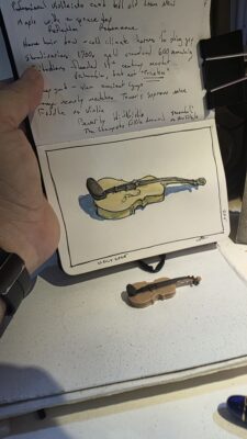 Good morning, good morning, good morning. At 5:30 in the morning I pulled a tiny violin from the Random Object Randomogrifier and set it down for a quick study.